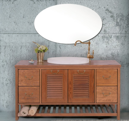 גוף ארון סנדוויץ מצופה פורניר,רגליים + חזית עץ מלא, מראה קריסטל בלגי מרחפת\אלומיניום לבחריה, דלתות ומגירות טריקה שקטה, משטח עליון עץ מלא + כיור יצוק מתנה